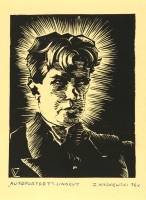 Zenon Waśniewski | Grafika | Rycina przedstawia autoportret artysty zakomponowany jako popiersie. Głowa lekko zwrócona w lewą stronę, włosy gęste, twarz pociągła. Artysta ubrany w garnitur, pod szyją muszka. Sygnowana w lewym... | |