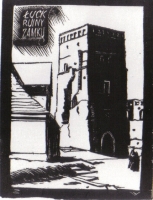 Zenon Waśniewski | Grafika | Rycina, wkładka do Kameny, przedstawia bramę wjazdową zamku w Łucku. Brama silnie oświetlona z prawej strony. Po prawej widoczny jest fragment parterowego budynku. w prawym górnym rogu zapis na banderoli:... | |