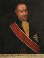 Malarz nieokreślony | Malarstwo | Portret w popiersiu Wojciecha Alberta hr. Poletyły herbu Trzywdar, kasztelana ziemi chełmskiej. Głowa podgolona, nad ustami niewielkie wąsy opadające wokół ust. Mężczyzna ubrany jest w czerwony... | |