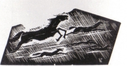 Zenon Waśniewski | Grafika | Rycina, w formie wydłużonego pięciokąta, przedstawia grupę galopujących koni, zwróconych w lewą stronę. Sygnowana w prawym dolnym rogu monogramem "WZ". | |