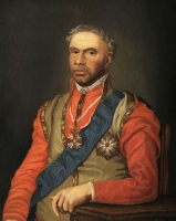 Malarz nieokreślony | Malarstwo | Portret przedstawia popiersie mężczyzny w średnim wieku, z wysoko podgoloną głową. Ubrany jest w ciemny kontusz, żółty żupan z białym wyłogiem. Przez prawe ramię przewieszona czerwona wstęga... | |