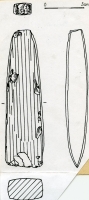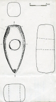 Kształt okazu trapezoidalny. Przekrój poprzeczny czworokątny. Obuch prawie kwadratowy. Ostrze symetryczne, lekko zakolone o wysokości większej niż wysokość obucha. Otwór usytuowany w pobliżu...