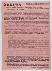 - | Dokumenty | Odezwa Tymczasowego Komitetu Jedności Młodzieży skierowana do Młodzieży Ziemi Chełmskiej w sprawie przynależności do Komitetów Młodzieży wydana w listopadzie 1956 roku. | |
