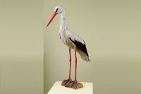 Okaz dermoplastyczny, stojący na drewnianej podstawce. Upierzenie kontrastowe, biało-czarne. Długie nogi i dziób koloru czerwonego. | Pokaż kartę |