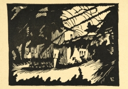 Zenon Waśniewski | Grafika | Rycina przedstawia gęstwinę drzew i gałęzi. W głębi widoczne są zabudowania. Sygnowana w lewym dolnym rogu monogramem "WZ". | |