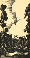 Zenon Waśniewski | Grafika | Rycina przedstawia drzewa rosnące przy drodze, w tle kłębiące się chmury. Sygnowana na marginesie u dołu, ołówkiem "Z Waśniewski". | |