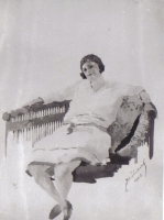 Zenon Waśniewski | Malarstwo | Akwarela przedstawia kobietę w białej sukni, siedzącą na kanapie, przykrytej narzutą w czerwone kwiaty. Sygn. po lewej u dołu: Z. Waśniewski 1928. | |