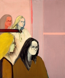 Sapetto Marek (1939-2019) | Malarstwo | Kompozycja figuralna przedstawiająca cztery popiersia kobiece umieszczone z lewej strony obrazu. Z tejże strony w połowie obrazu silny, poziomy akcent karminem. Tło różowo-fioletowe w układach z... | |