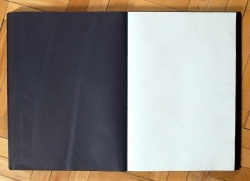 Jękot Jerzy | Obiekt | Księga oprawiona w czarne okładki, posiadająca gładkie strony z czarnego kartonu. Jedna z kart w środku księgi jest biała. Obiekt niesygnowany. | |