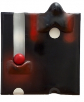 Krygier Stefan (1923-1997) | Malarstwo | Obiekt o bardzo wysmukłym reliefie tworzący kompozycję abstrakcyjną. Płyta w kolorze czarno-czerwonym. Z lewej strony na wypukłym wsporniku czerwona kula, nad nią pionowy kanał o przekroju półokrągłym,... | |